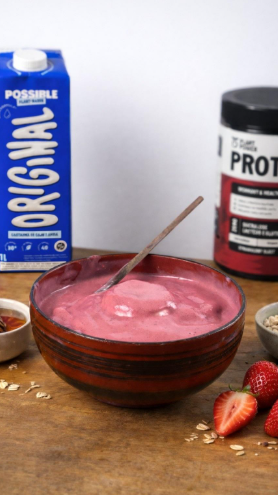 Outra opção indicada para os dias quentes é o smoothie bowl de morango, que combina morangos congelados, Possible Original, proteína Plant Power Strawberry Blast, chia, iogurte e um fio de mel. Para o preparo, os ingredientes devem ser batidos no liquidificador até atingir uma consistência cremosa. A sugestão é servir em uma bowl e finalizar com toppings a gosto, como frutas, sementes ou granola, conforme a preferência.